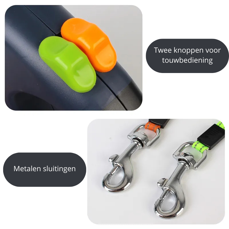 Laat twee honden tegelijk genieten van hun bewegingsvrijheid, terwijl jij alles onder controle houdt met maar één hand. Geen geknoop, geen gedoe. Je andere hand blijft volledig vrij — om je telefoon te pakken, een koffie te dragen of gewoon relaxed te wandelen. Perfect comfort voor jou, ultieme vrijheid voor je honden.